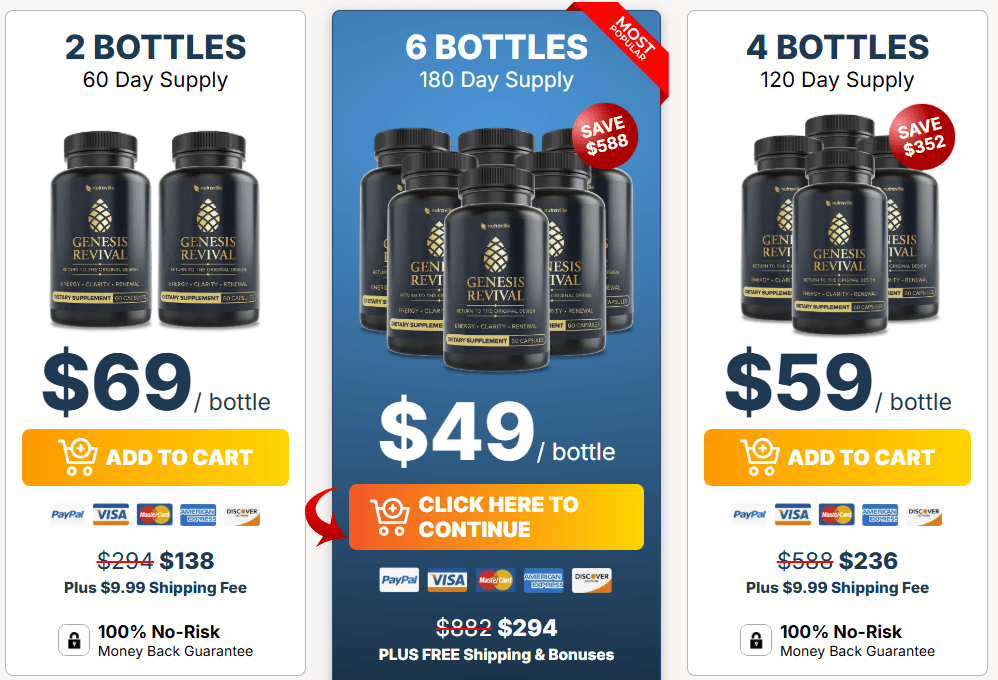 Genesis Revival is available in discounted packages for a limited time. Pricing is structured to reward long-term use.